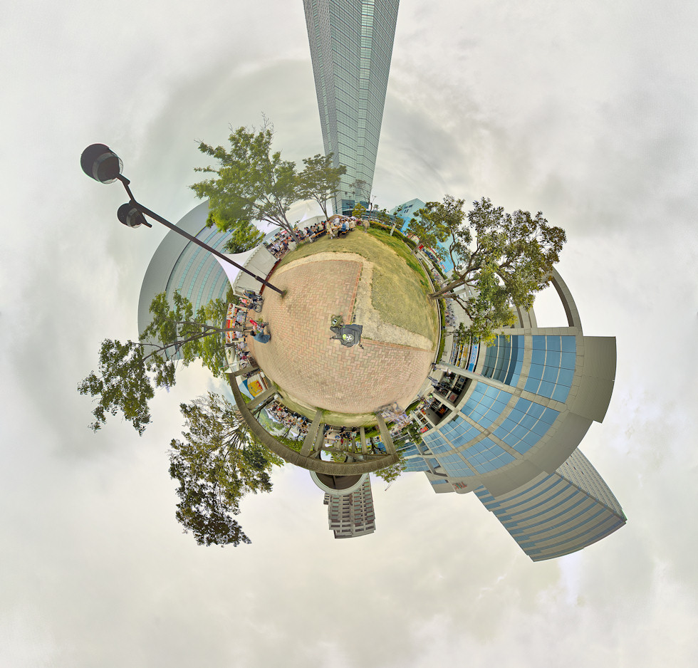 撮影したパノラマ画像で、Stereographic Downによる投影法を試してみました。
