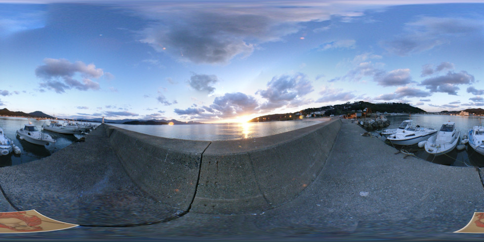 ●Fish Eye for HOLGA + GR Digital で岐志漁港をパノラマ