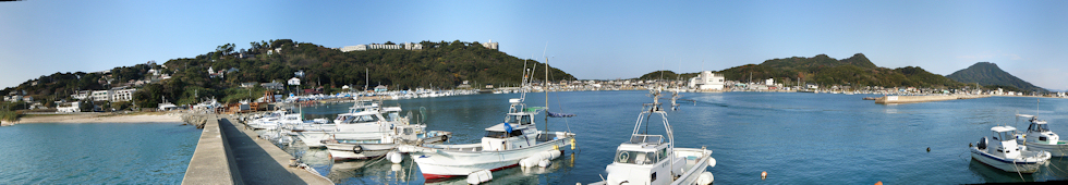 〔岐志漁港~エメラルド・リゾートホテル~可也山(筑紫冨士)パノラマ〕