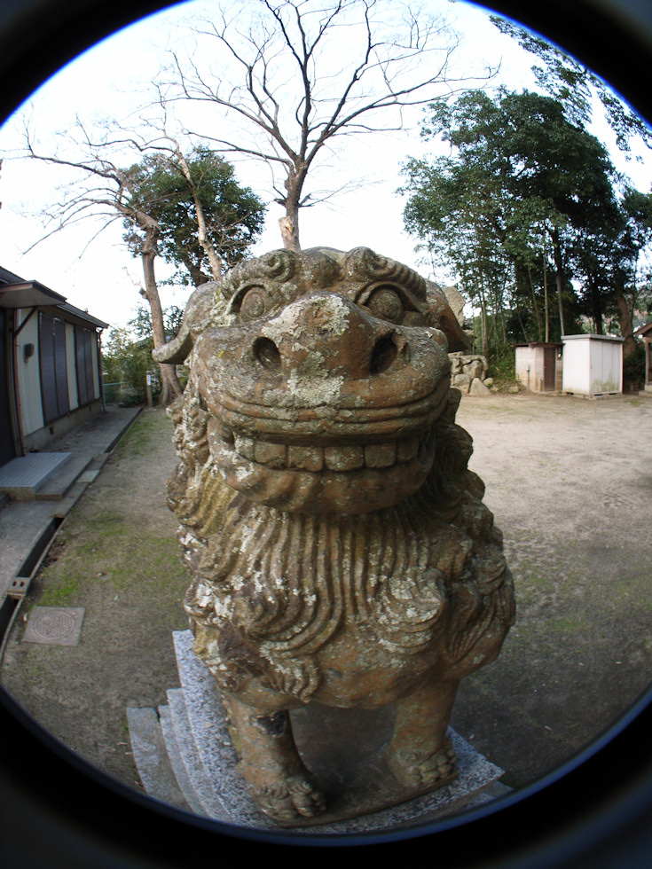 帰り際に、チョット遊び心で狛犬を魚眼で撮影