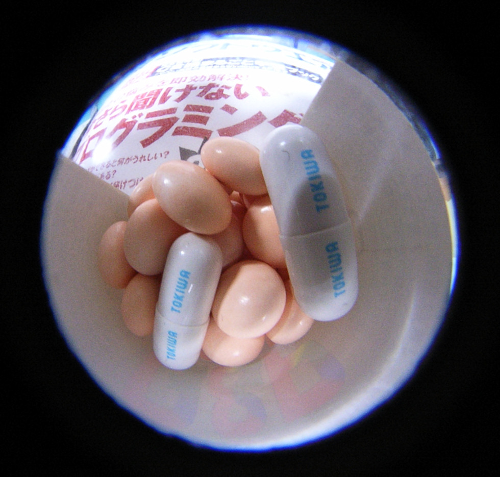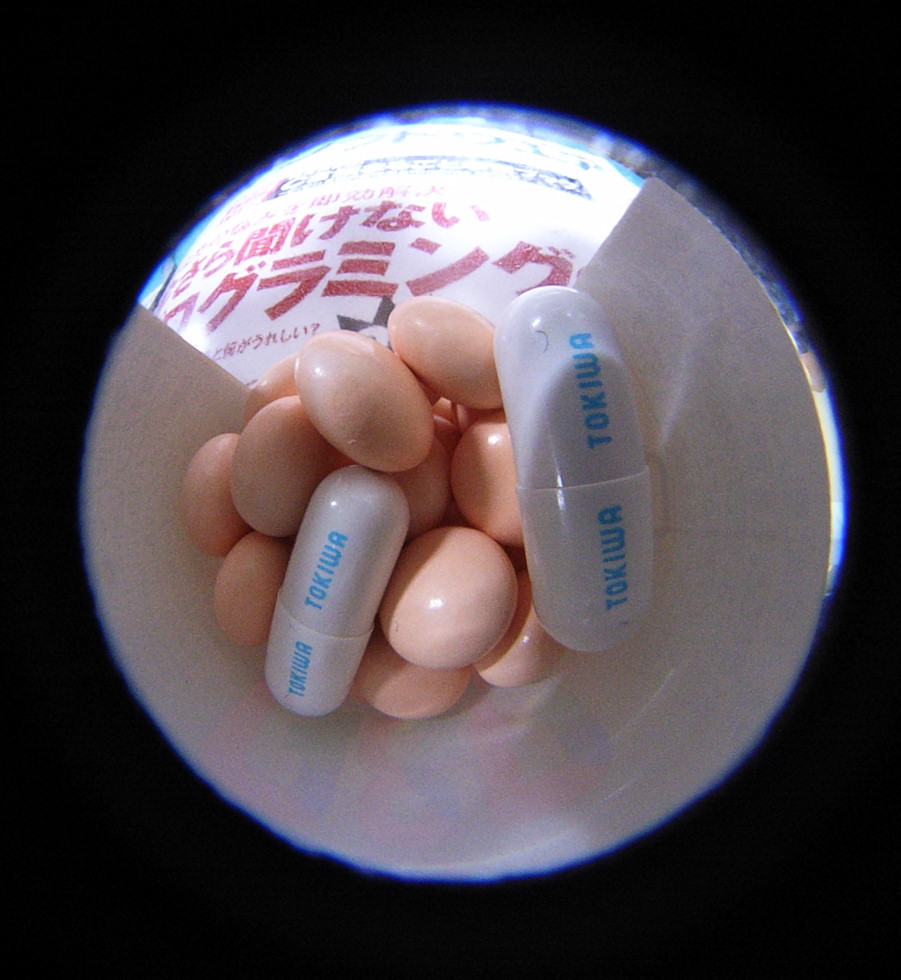いけない風邪薬(カプセルに文字が印刷されているので)を2個放り込んで写して見ました。
